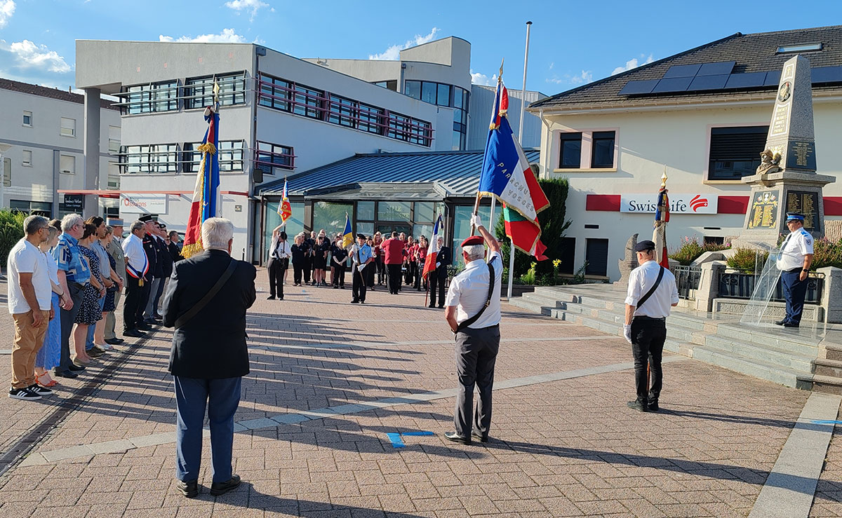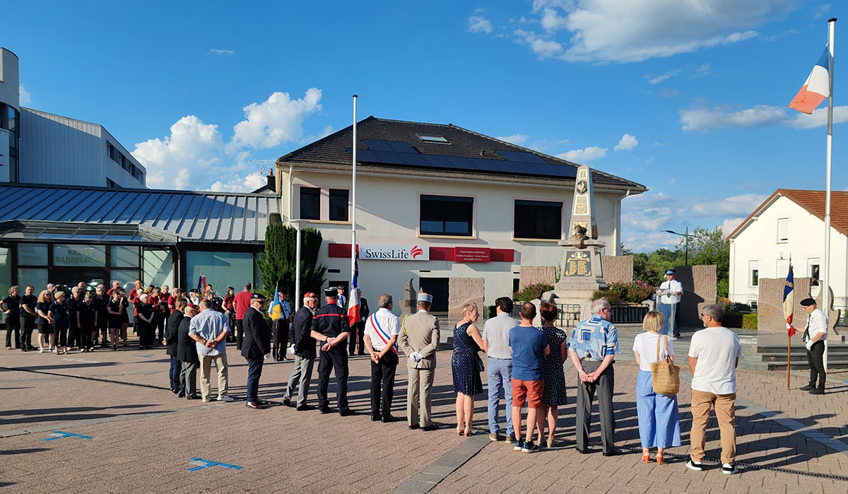 La cérémonie de la Fête nationale a rassemblé, cette année encore, les Golbéens autour du monument aux morts, au cœur de la ville. En ce 13 juillet à 19h30, alors que la lumière déclinante de la soirée enveloppait doucement la place, les différents représentants officiels ont pris place pour rendre hommage à celles et ceux qui ont servi la Nation. Étaient présents les représentants des associations d’anciens combattants, les élus municipaux dont M. le Maire Roger Alémani, mais également un représentant de la délégation militaire ainsi qu’un représentant du corps des sapeurs-pompiers. Cette diversité d’acteurs témoignait de l’unité et de la reconnaissance collective envers l’histoire et les valeurs républicaines.
