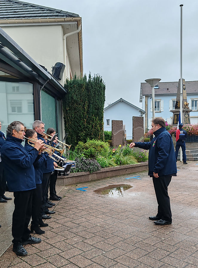 La cérémonie, d’une durée d’environ trente minutes, s’est conclue par l’interprétation de deux pièces emblématiques du répertoire militaire : La Marche de la 2ᵉ DB, rendant hommage à l’une des divisions françaises ayant participé à la libération du pays, et Les Dragons de Noailles, œuvre fréquemment jouée lors des commémorations patriotiques golbéennes. Ces deux morceaux, interprétés avec précision et conviction, ont offert une fin majestueuse à l’événement.