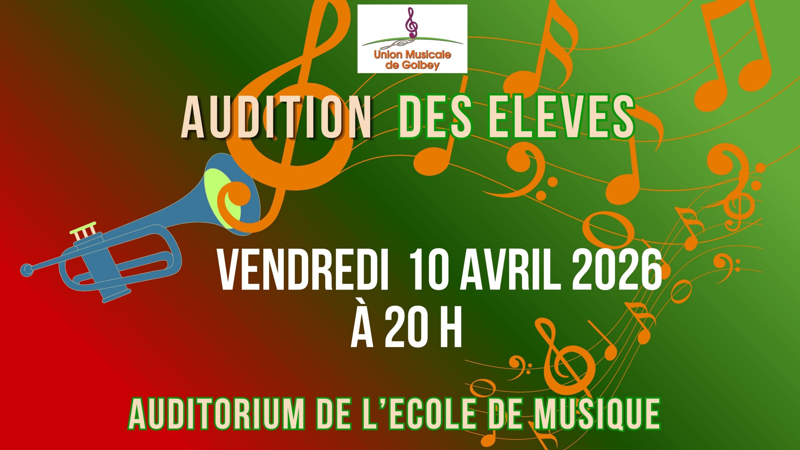 L’École de Musique de Golbey organise une nouvelle session d’auditions le vendredi 10 avril 2026 à partir de 20h, dans ses locaux.